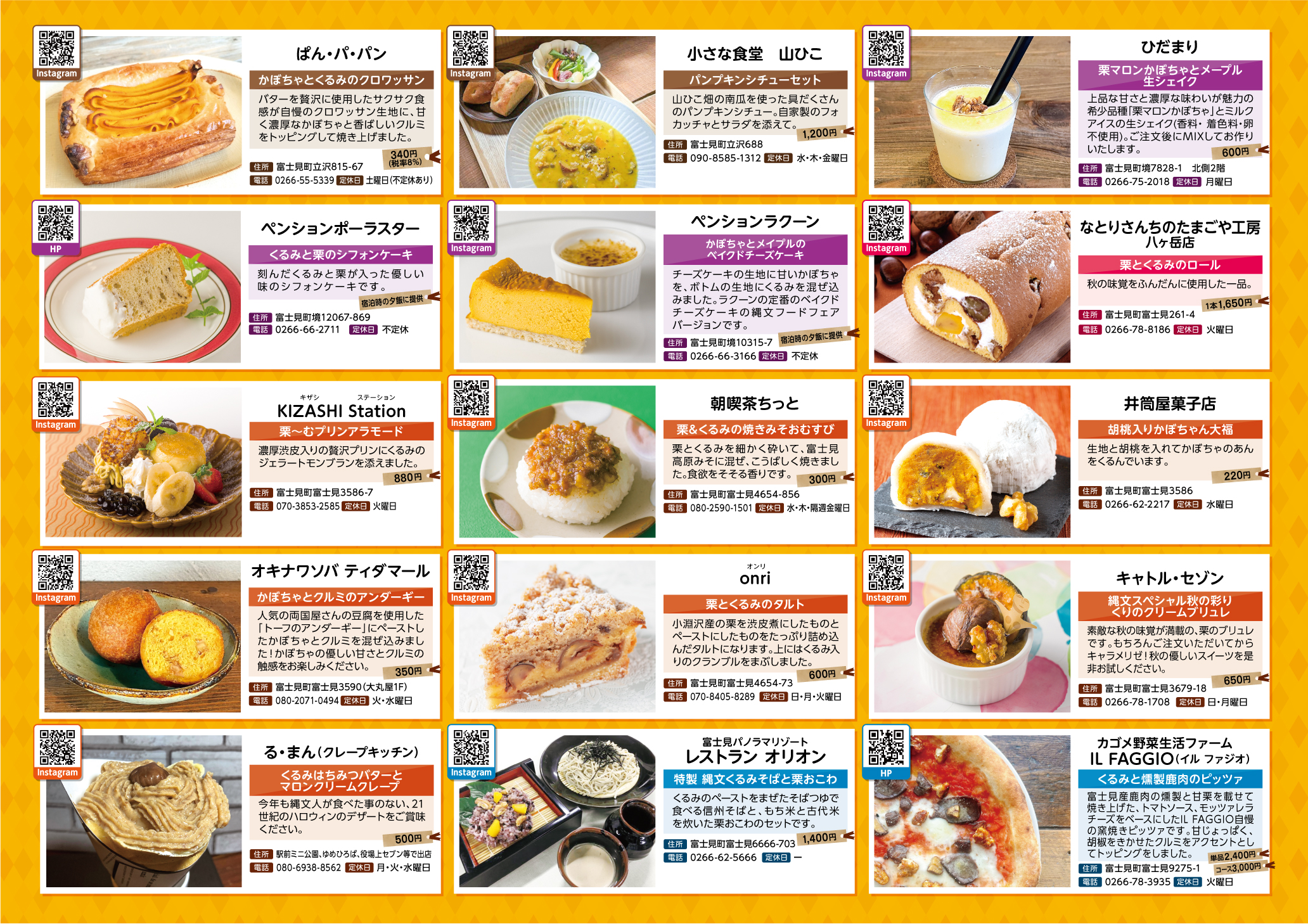 その一環となっているのが、この「縄文フードフェア」。富士見町にあるレストランやカフェ、ベーカリーなど合わせて20店舗が参加し、5000年前の縄文人が好きだったという「栗・くるみ・かぼちゃ」を使ったオリジナルメニューが期間限定で登場します!