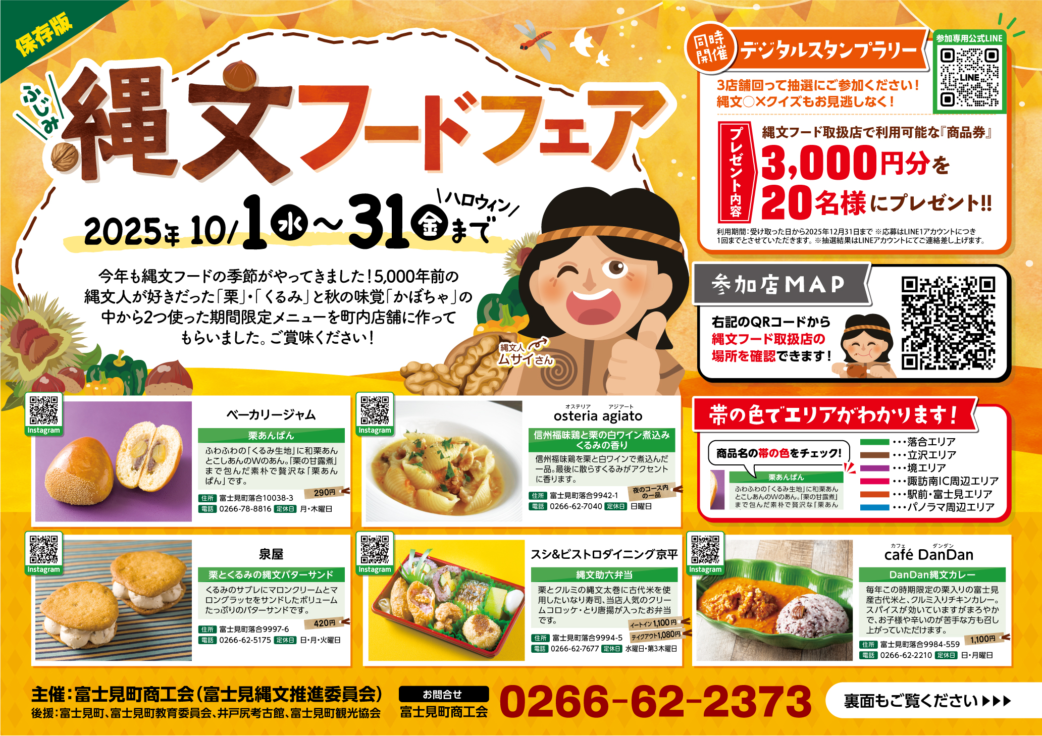 期間中にはデジタルスタンプラリーも同時開催。3店舗回ると抽選に参加でき、当選者には、縄文フード取扱店で利用できる3,000円分の商品券が用意されているのでお楽しみに!