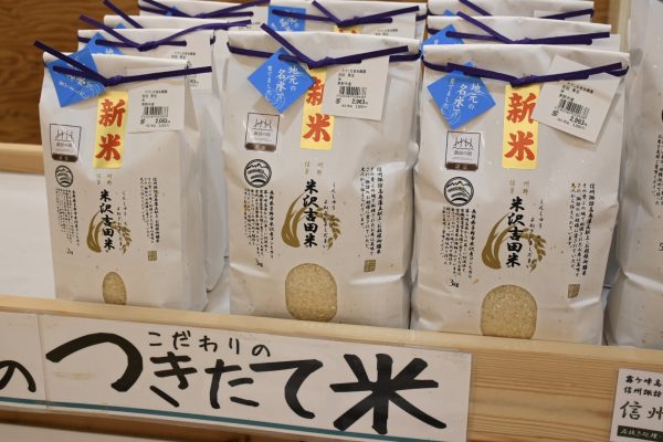 昔、諏訪高島藩主のお殿様の御膳米として献上されていたという米沢米や、もちっと粘り気のある食感が特徴のミルキークイーン、長野県オリジナル米など、合わせて4種類ほどのお米が並んでいましたよ。