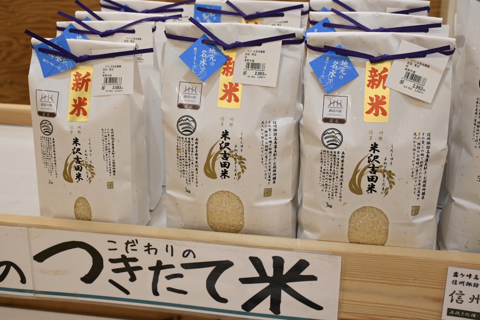 収穫されたばかりの新鮮な新米は、古米に比べて、つや、風味、香り、水分量の多さなど、おいしさがひと味違います。信州ならではのお米が揃ったたてしな自由農園にぜひ足を運んでみてください!