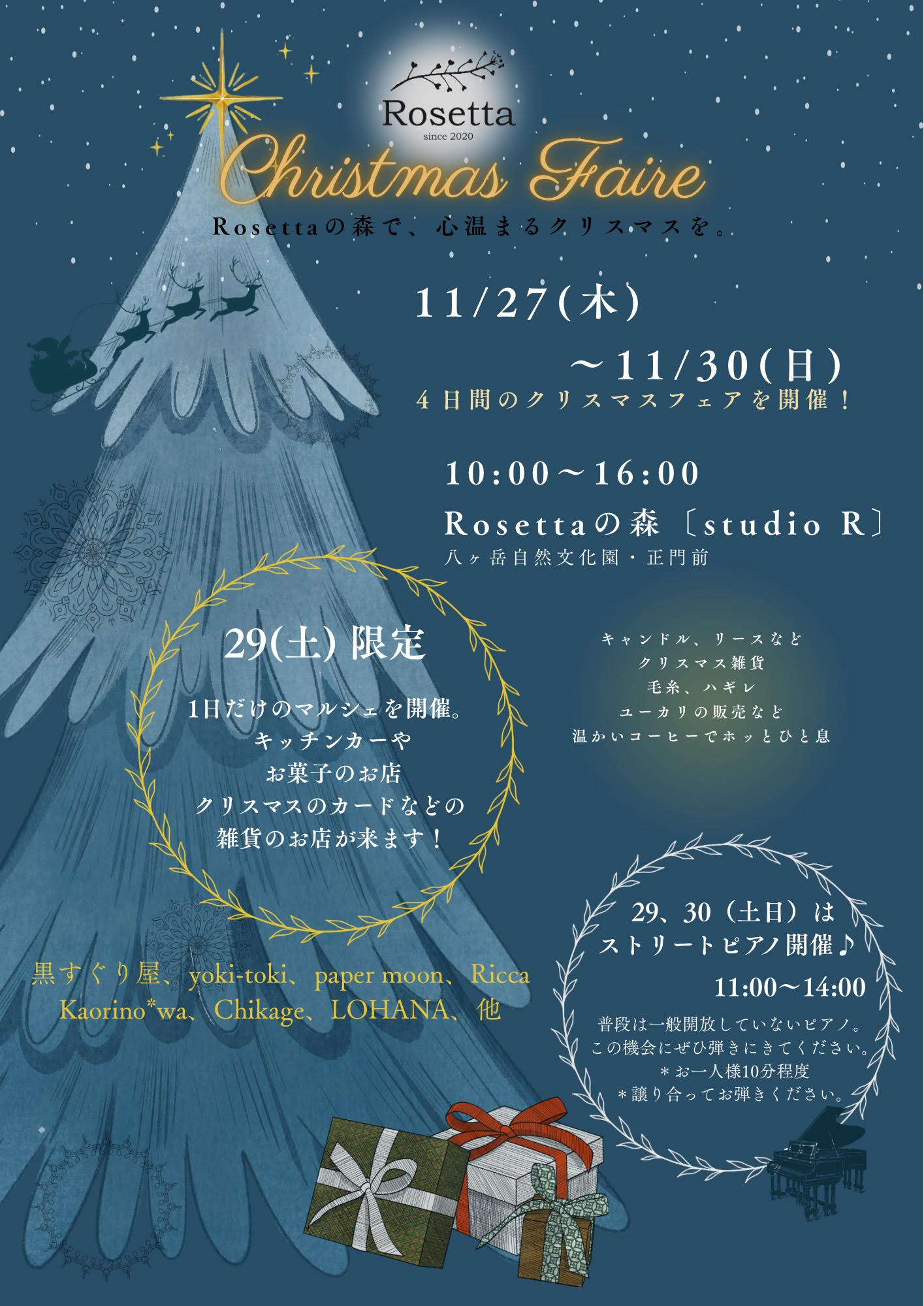 そんなロゼッタの森・studio Rにて、11月27日から30日までの4日間にわたり、「Rosettaクリスマスフェア」が開催!
