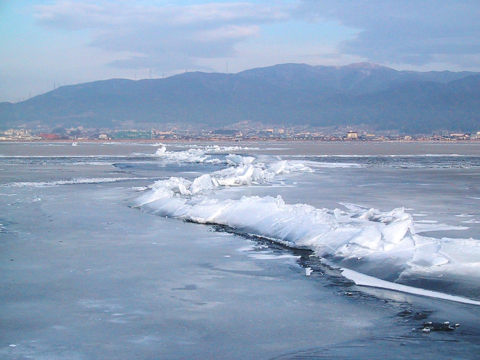 なお、諏訪湖は全面凍結した場合も氷の厚さや強さにムラがあり、状態も日々変化しています。また、諏訪湖は温泉や天然ガスが湧き出ているポイントがあるため、ところどころ氷が薄くなっているため大変危険です。諏訪湖の氷の上に立ち入るのは危険ですので、乗らないように注意してください。