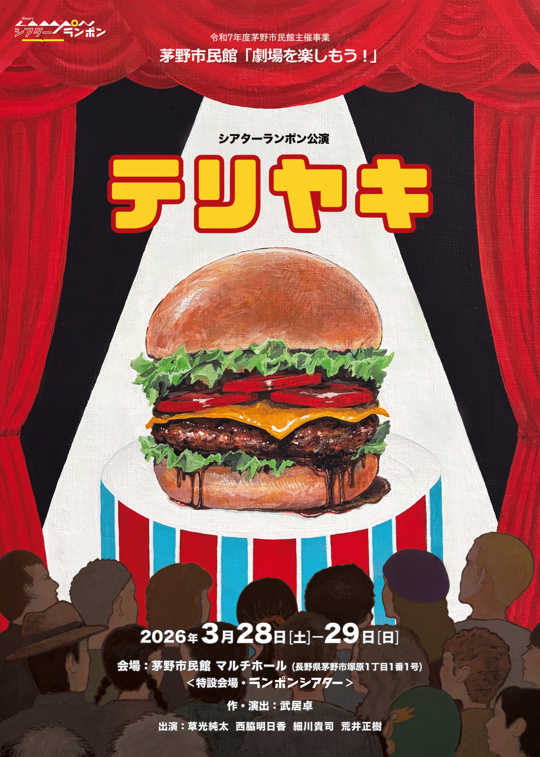 3月28日、29日の2日間にわたり、茅野市民館マルチホールにて「劇場を楽しもう!」シアターランポン公演「テリヤキ」が開催されます。